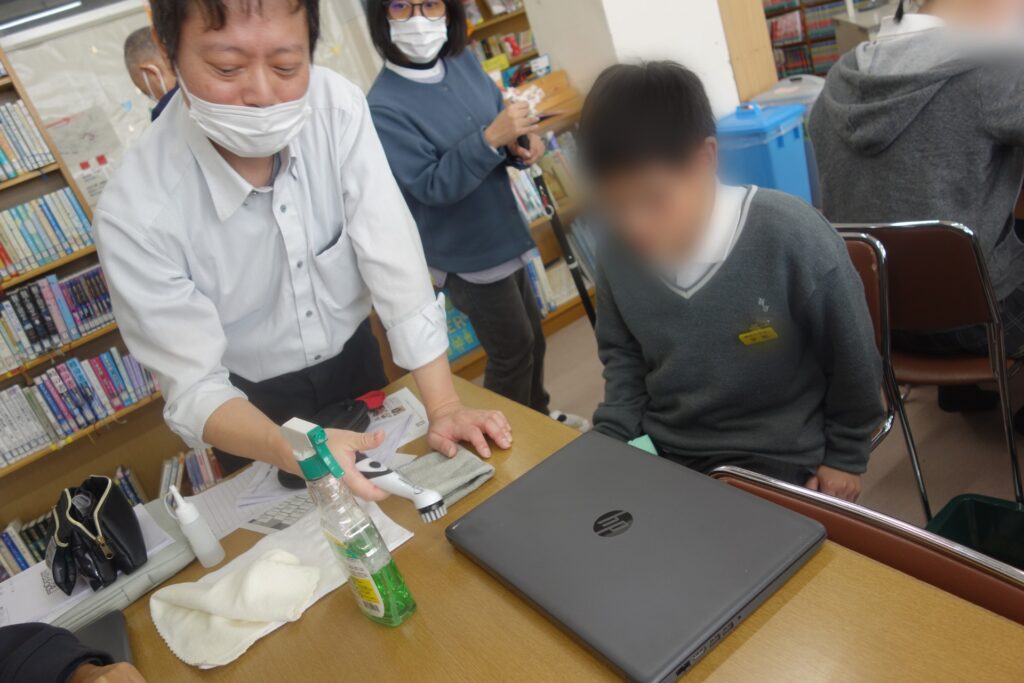 生徒は2人1組でPCのクリーニング作業を体験しました。