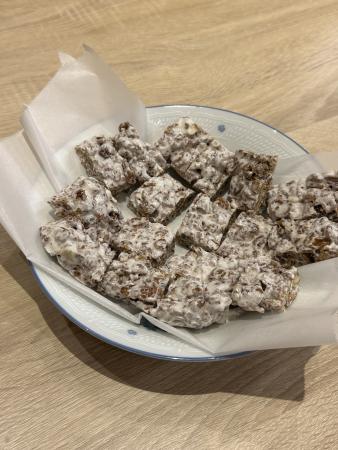 チョコバーは、溶かしたマシュマロとフレークを混ぜて冷やすだけ✨