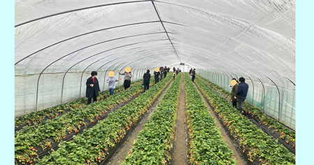 到着後は、ファームの方からいちごの取り方を丁寧に教えていただき、いざいちご狩りスタート!